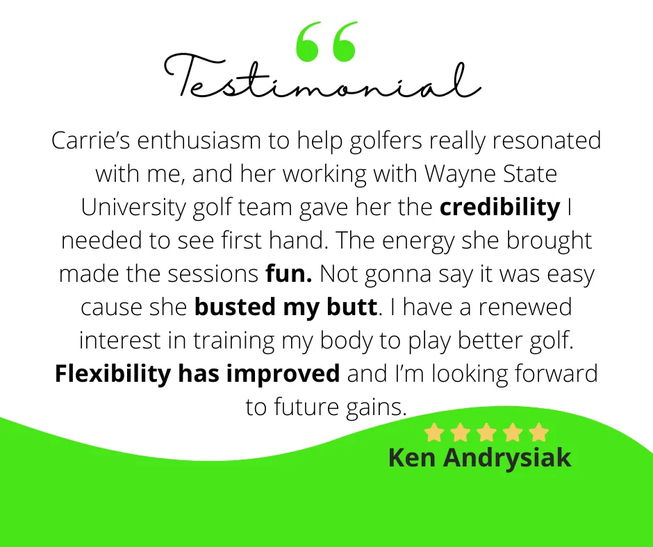 Hi, I’m Carrie O’Rourke — a proud TPI Golf Fitness Professional and recipient of the Golf Fitness Association of America’s prestigious Best Golf Fitness Program award.