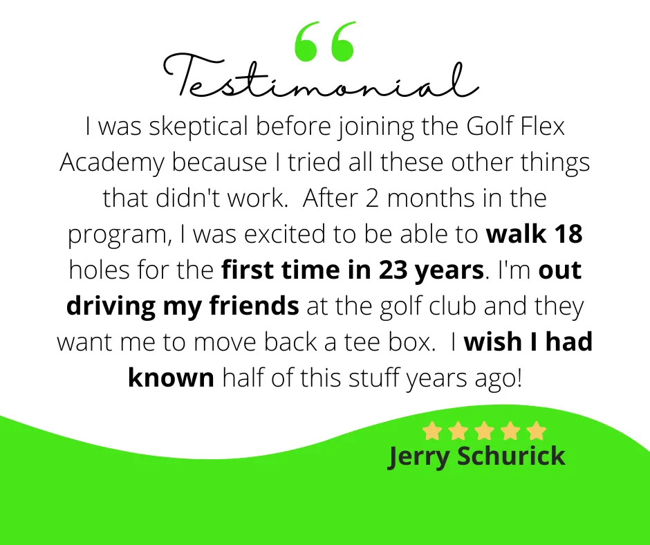 The Golf Flex Academy is designed to improve flexibility and speed, so you can golf with less pain and more power...And live in your prime!